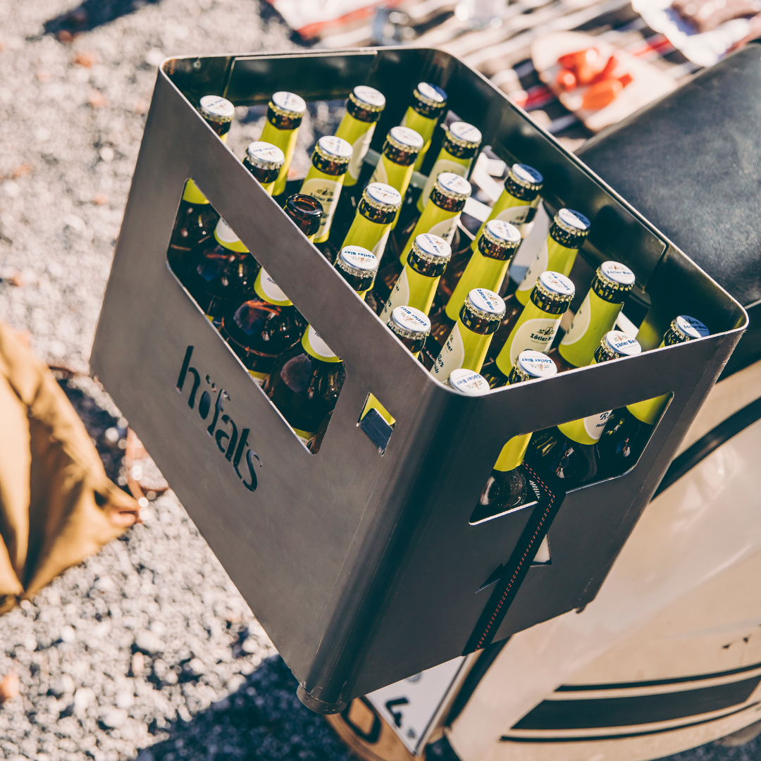 Beer Box has it all. Whether it’s bottles, wood or BBQ food - put everything you need in the box and off you go! Fire already burning? Put the cooking grate on top and get the BBQ started! The case has an integrated crown cap bottle opener, so you can leave yours at home.