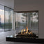 The Sky Small Roomdivider gas fireplace is designed as a visually striking, room-dividing feature, offering high efficiency (89%) and realistic flames via its Real Flame Burner. It has a flexible heat output, ranging from 4.1 to 15.7 kW depending on the gas type, and includes options such as anti-reflective glass, app control, and integration with home automation. Customizable options include black reflective panels and various fuel bed styles.Sky Small Roomdivider