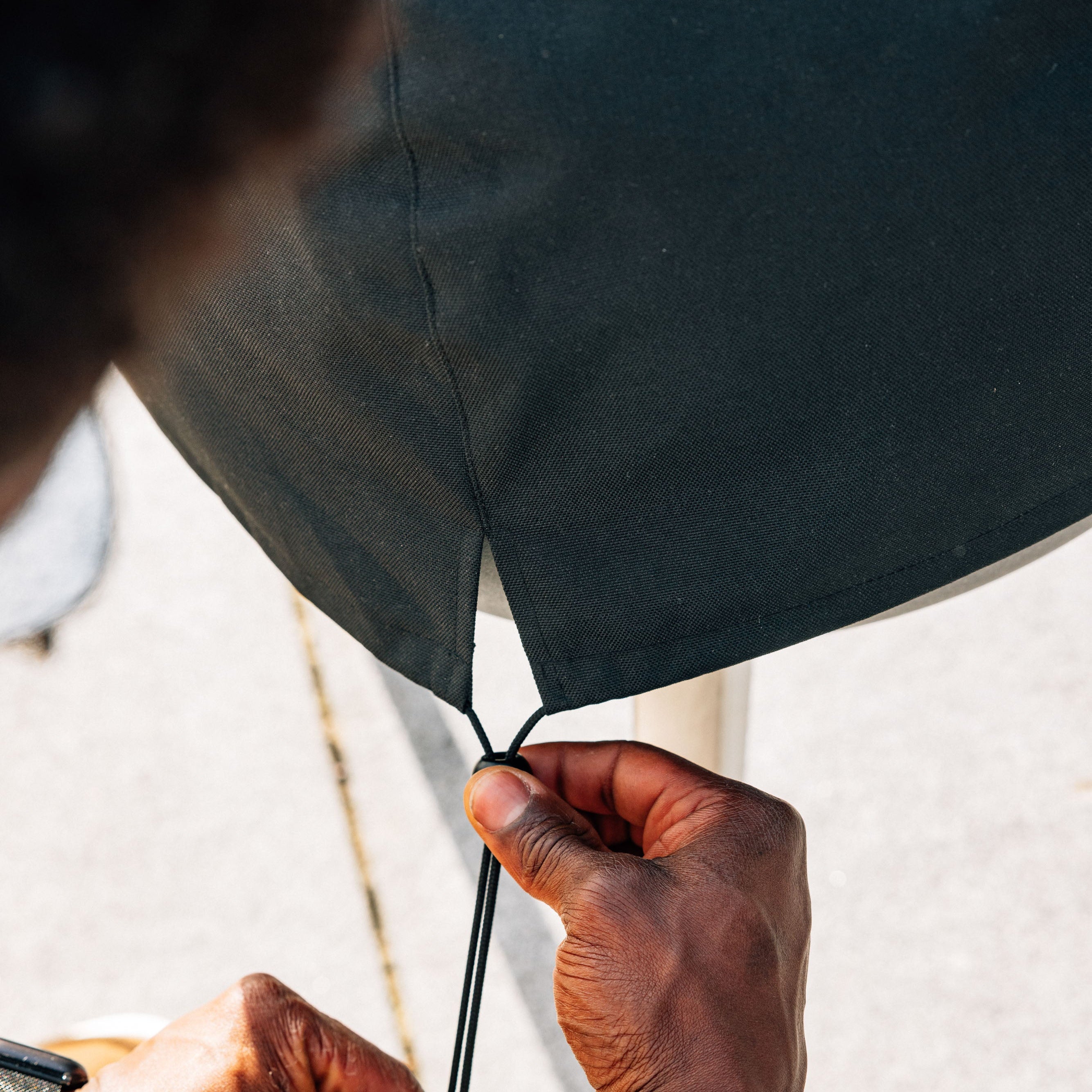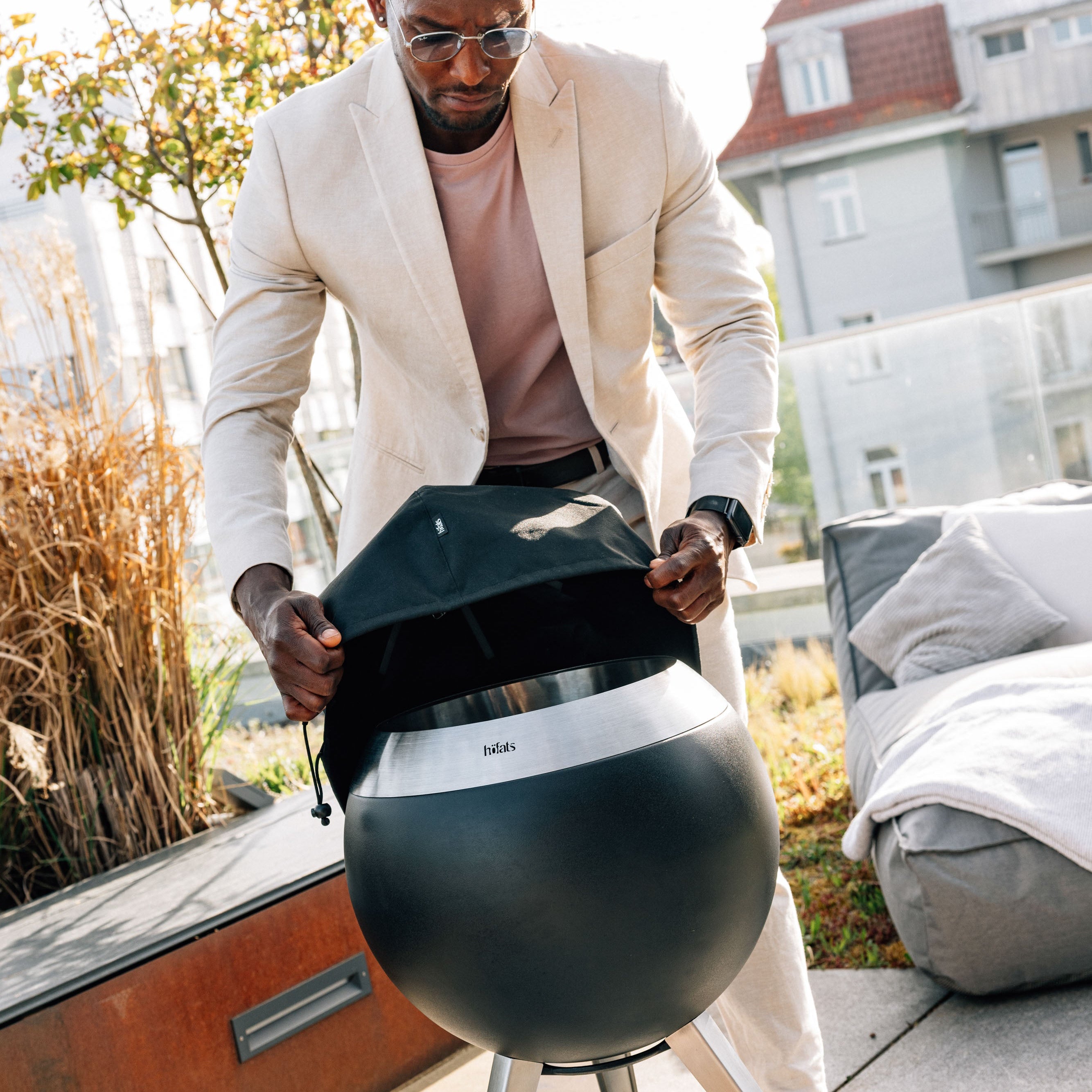 The protective cover for MOON 45 is easy to fit and secure. The practical drawstring with cord stopper at the bottom of the cover ensures a firm and secure fit in all weathers. The material is water-repellent and protects against dirt and moisture.