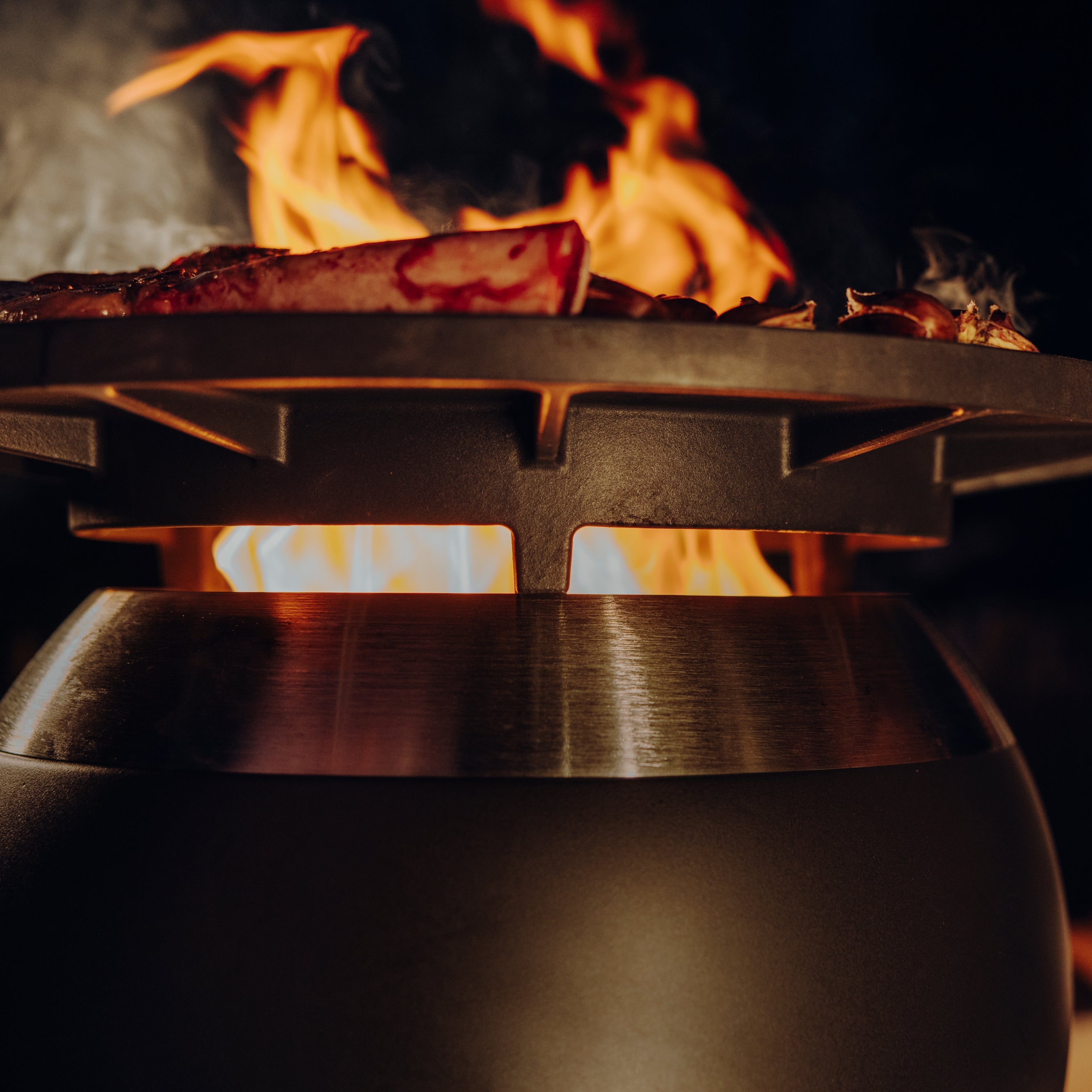 Moon Plancha - Cooking on a cast-iron surface heated by the fire. This ancient tradition continues to attract the attention of lovers of exceptional grilling today. With the Moon Plancha you can celebrate the creative art of cooking and grilling with the breathtaking wood or pellet fire of the Moon Fire Basket